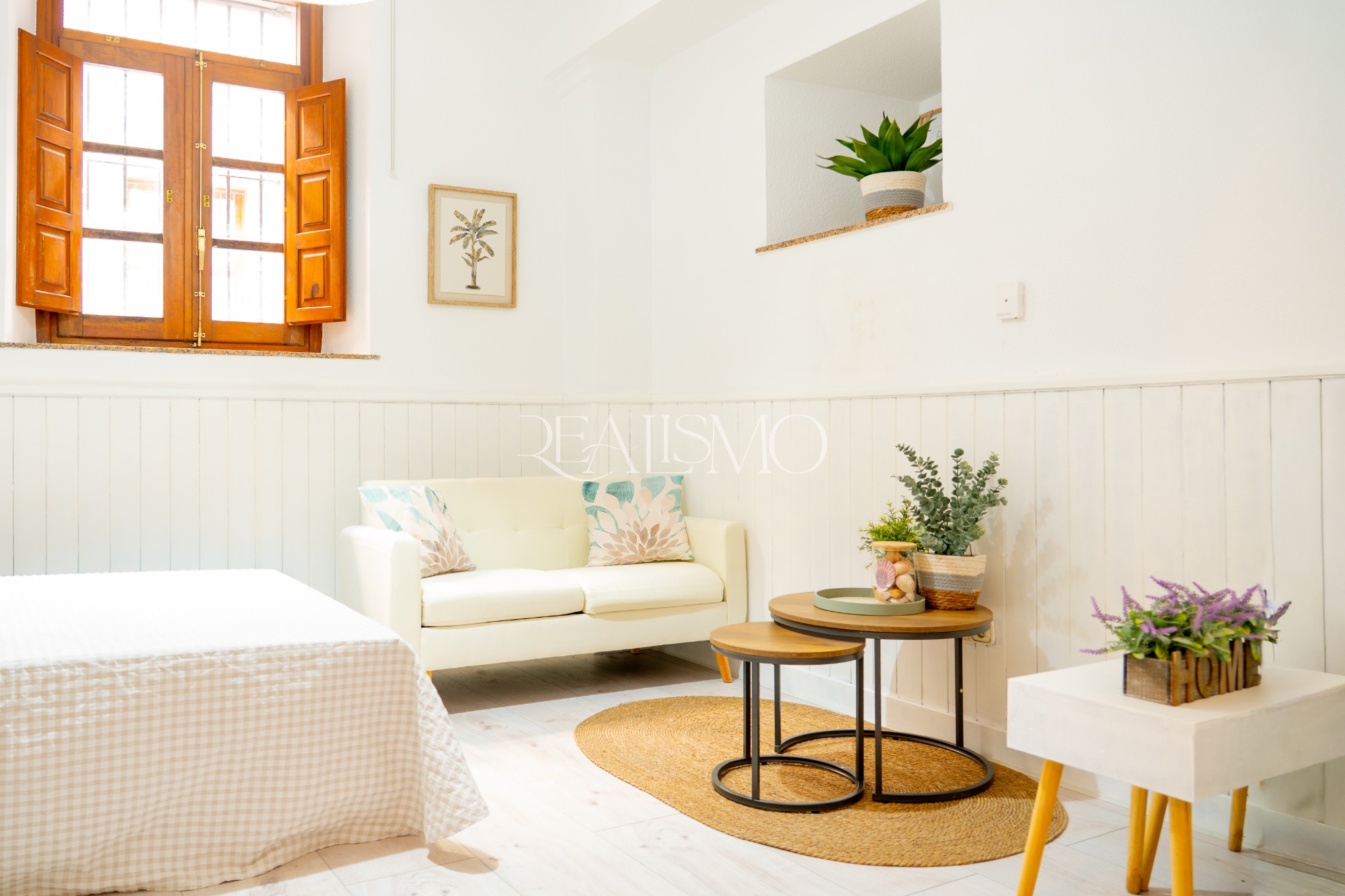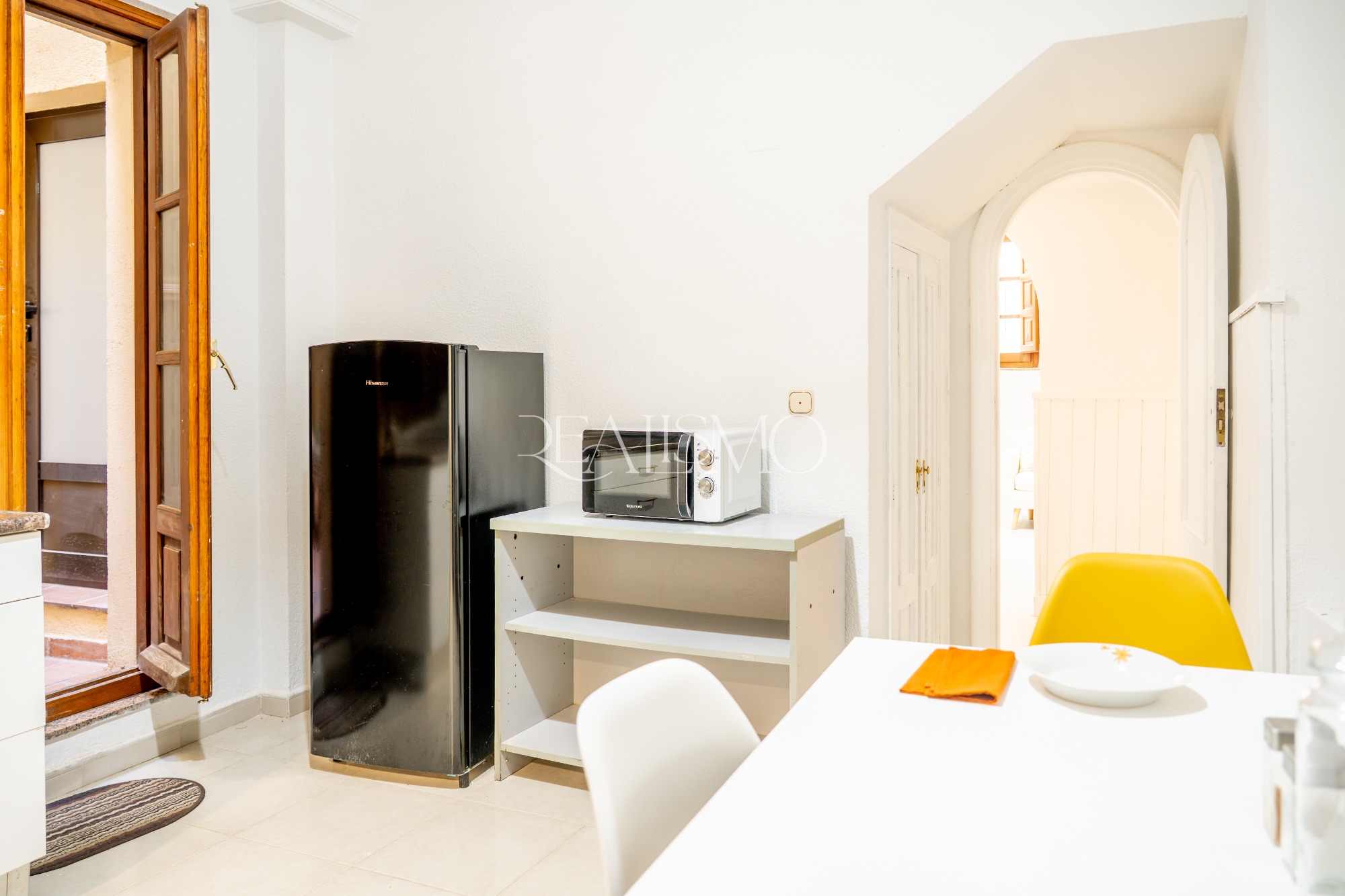 Situado en planta baja, el inmueble ha sido recientemente reformado, combinando la comodidad actual con detalles originales que evocan tradición. La vivienda se organiza en torno a un amplio recibidor, salón-dormitorio con luz natural y una acogedora cocina equipada, que se abre a un patio interior de uso privativo.